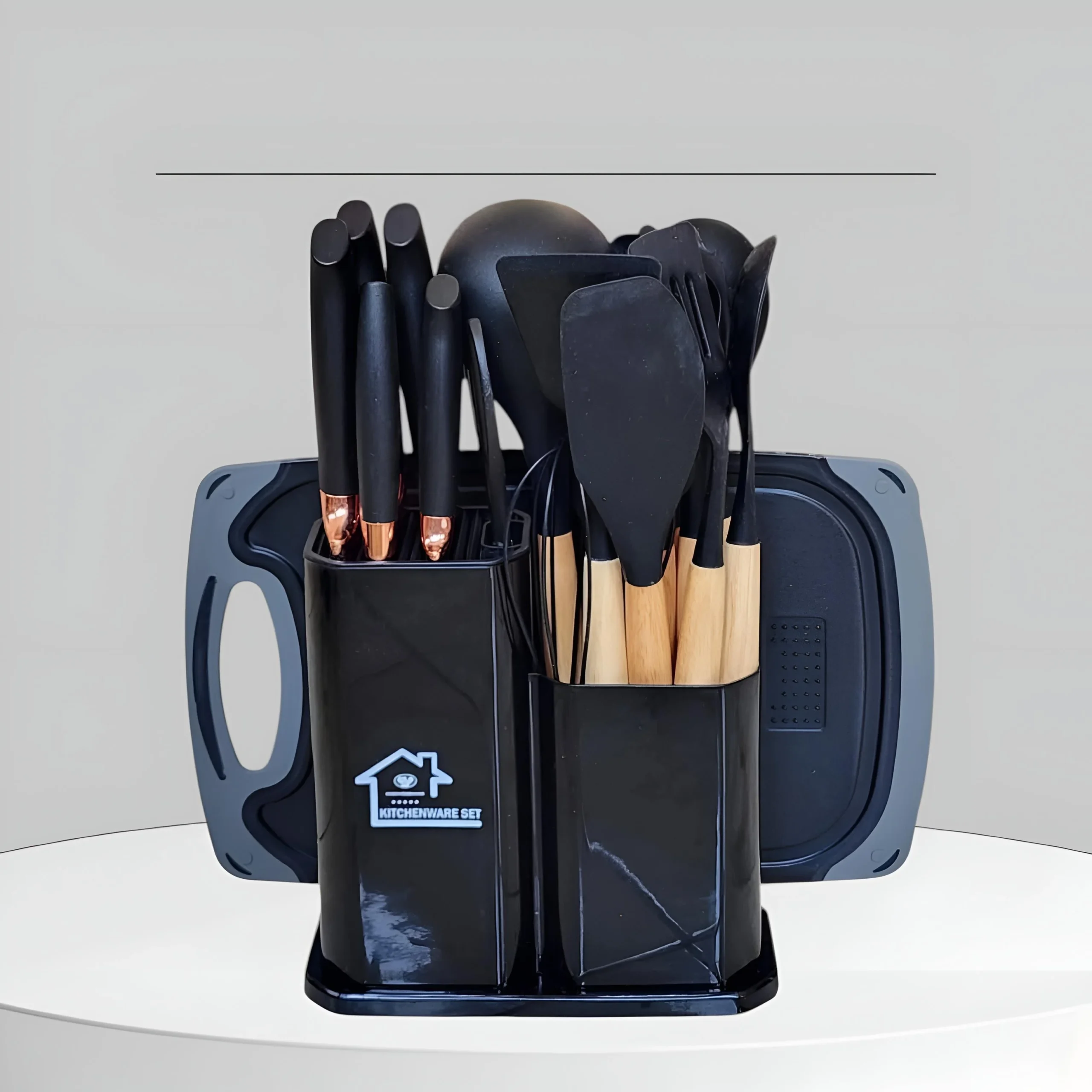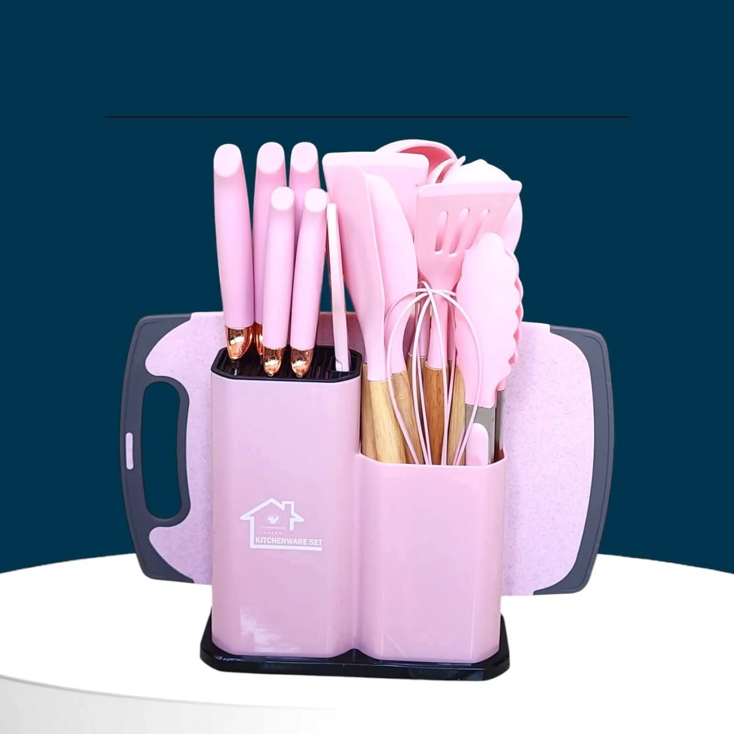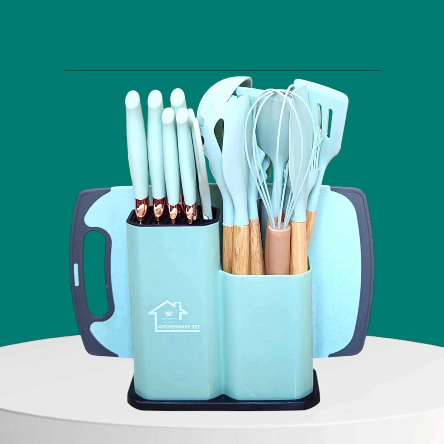 19pcs Silicone Kitchen Utensil Set With Wooden Handles,