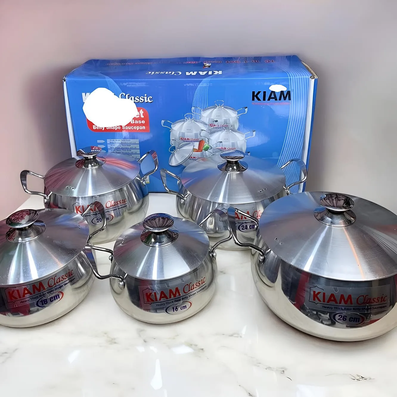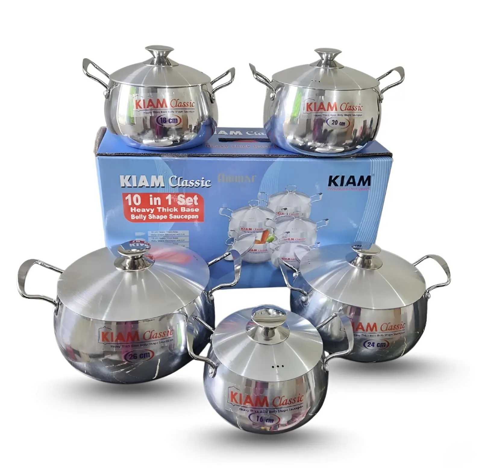 Kiam Heavy Thick Base Belly Shape Saucepan 10 in 1 set